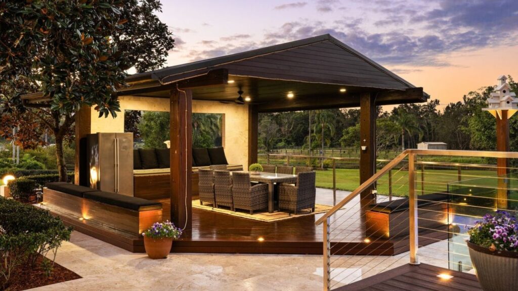 Equestrian facilities, including stables and a barn, align with the couple’s stated desire for a less suburban lifestyle.Â
