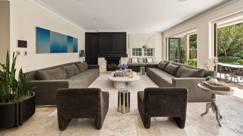 The property’s luxury amenities include both casual and formal living and dining areas, a study, and a gym.