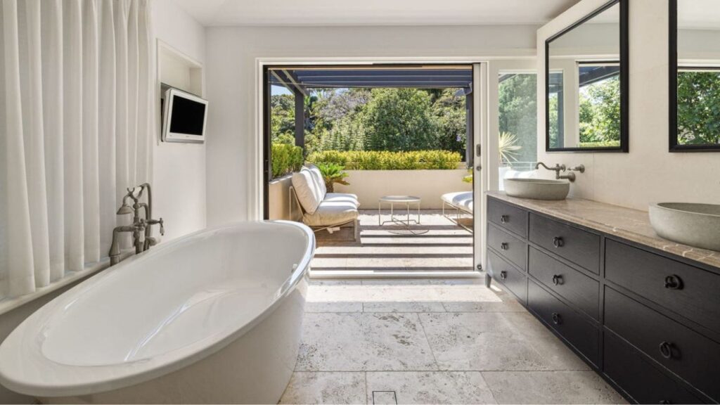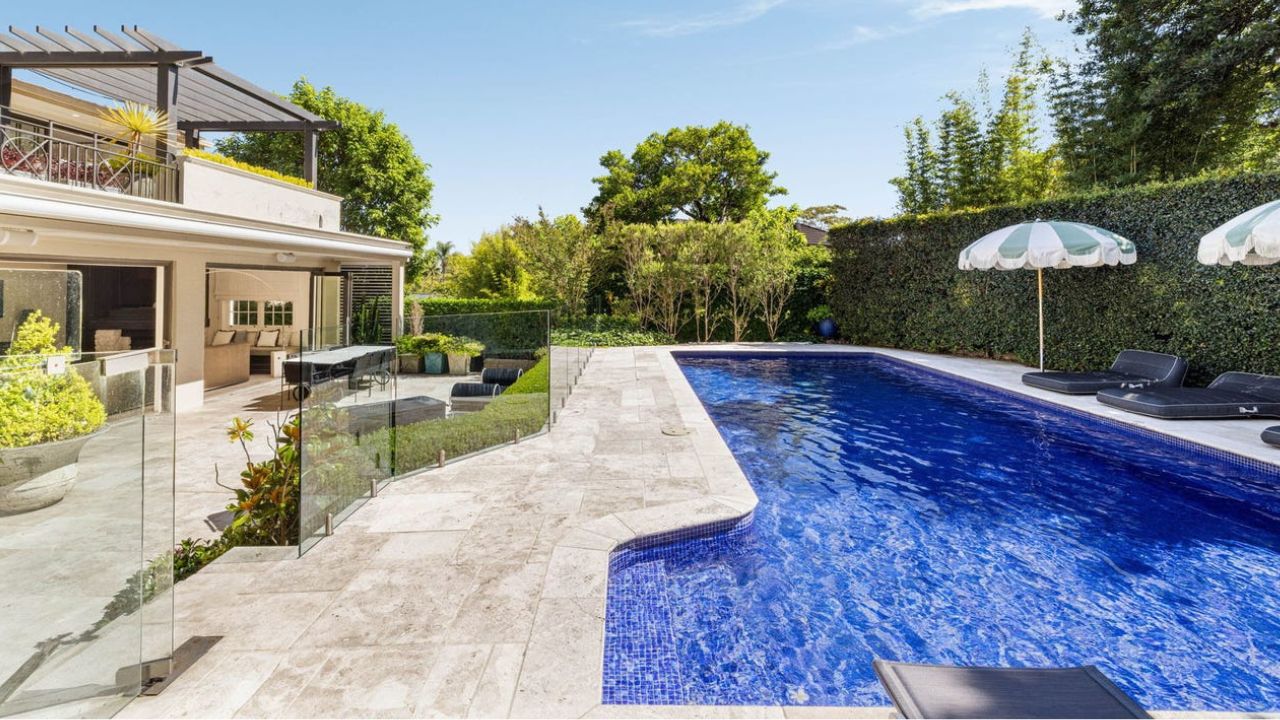 One of its standout features is a swimming pool complemented by a Tuscan-style cabana with a fireplace, creating an ideal entertainment space for Sydney’s warm climate.