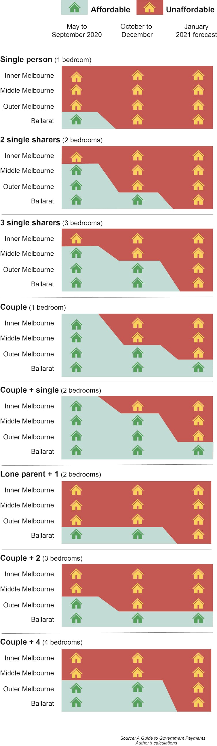 However, it will not help many households in the inner region of Melbourne where rentals will remain unaffordable. This pattern is worrying because thatโsย where many of the jobs will become availableย once economic recovery is under way.