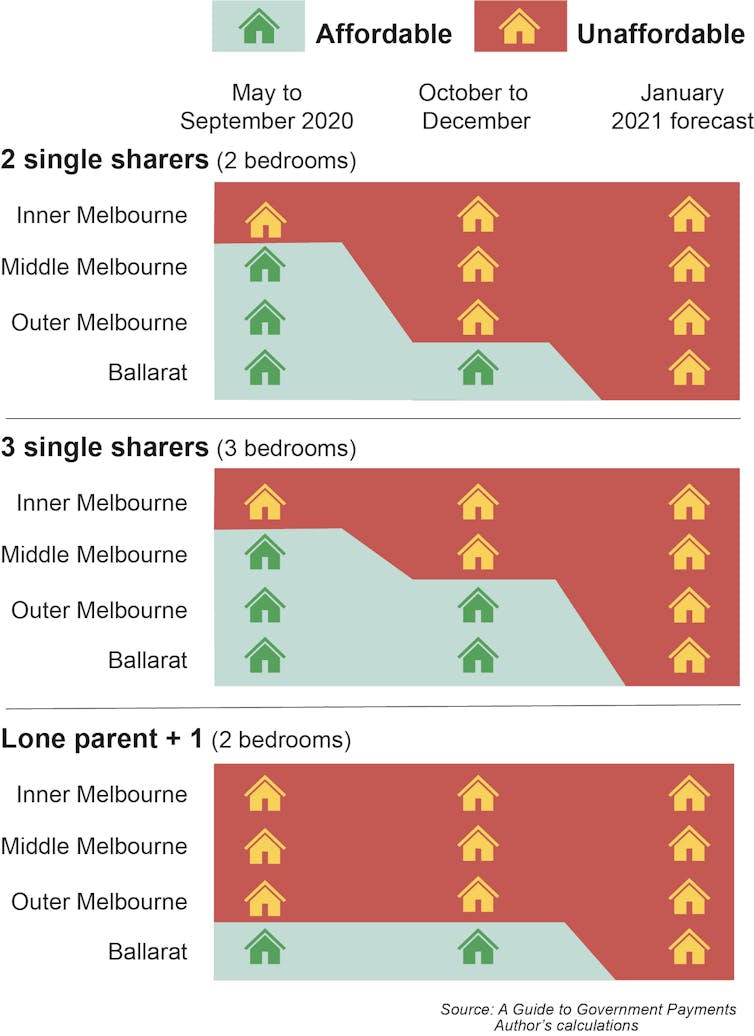 In Melbourne, we have found the unemployed will face the same problem of rental stress as those on the former Newstart allowance experienced before the pandemic. (Rental stressย is defined as a low-income household spending more than 30% of its income on housing costs.)