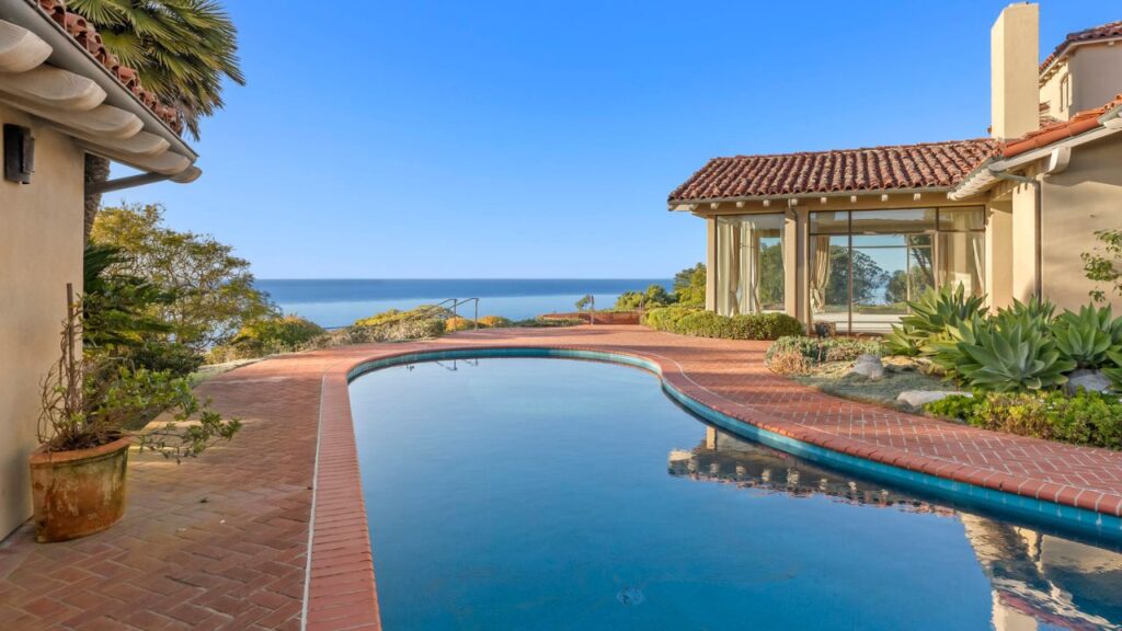 The property features four bedrooms, four bathrooms, a pool and a separate pool house.