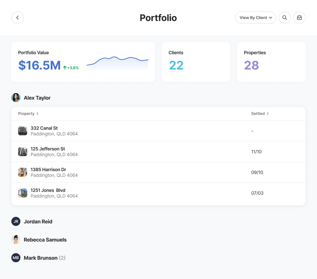 Agents using the platform can quantify the portfolio they manage, including number of properties and combined value under advisory care, rather than simply citing recent sales.