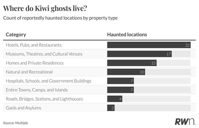 Ray White Group’s data analysis team has documented 82 haunted locations across New Zealand, revealing surprising patterns about where supernatural entities choose to reside.