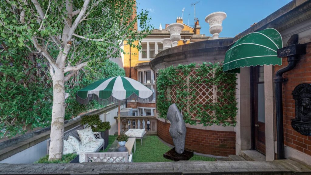 The Grade II Listed Edwardian mansion-townhouse at 26 Upper Brook Street offers views of Hyde Park and provides almost 13,928 square feet of palatial accommodation, including a central courtyard garden and a mews house to the rear.