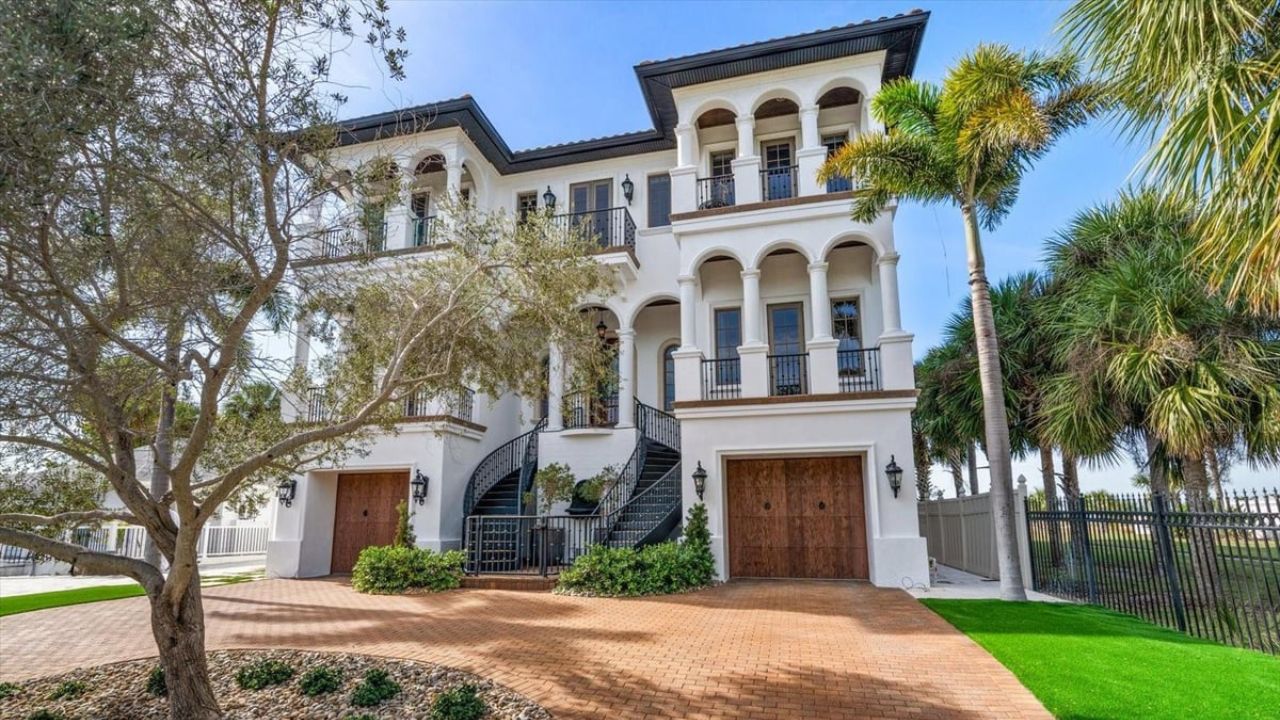 Located in Clearwater, the Italian-inspired residence spans 5,400 square feet across three storeys and sits directly on the beaches of the Gulf of Mexico.
