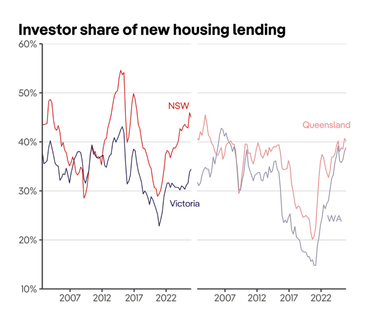Investor activity in the Australian property market has climbed sharply since 2023, driven by tight rental conditions and strong rent price growth.