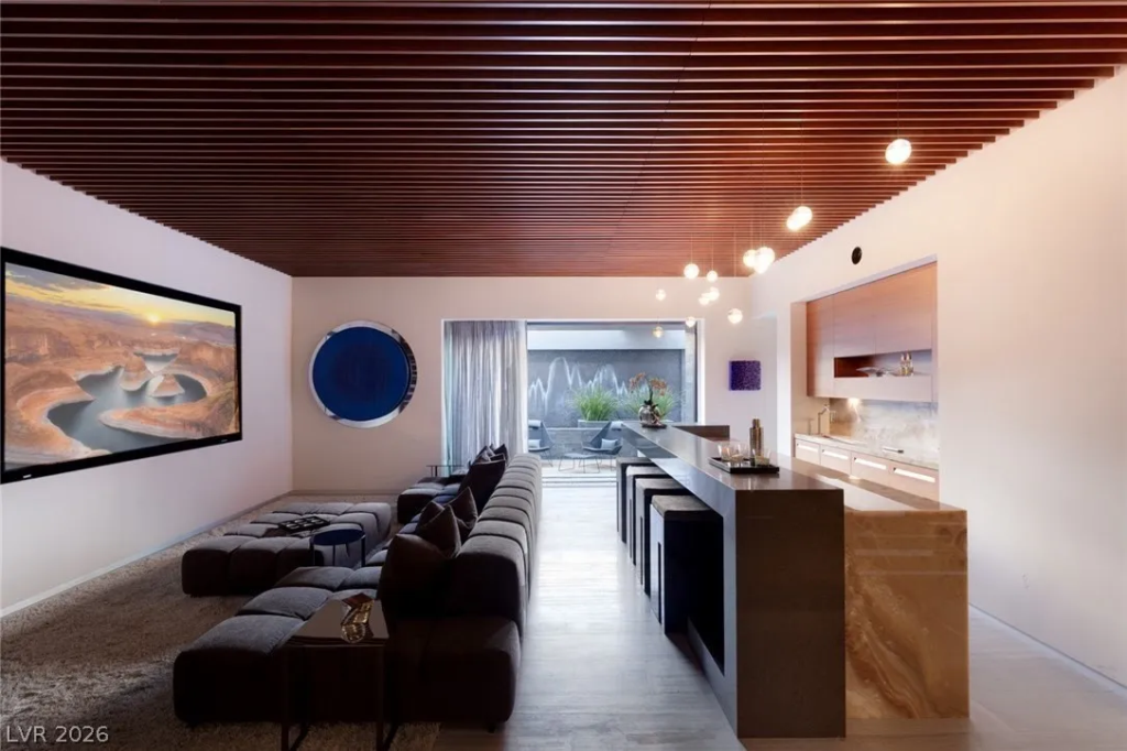 The sculptural home sits within the guard-gated Ridges community in Summerlin, one of Sin City’s most expensive neighbourhoods.
