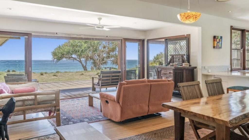 The four-bedroom beach shack sits on two titles totalling 1580 square metres, with 20 metres of direct beachfront.