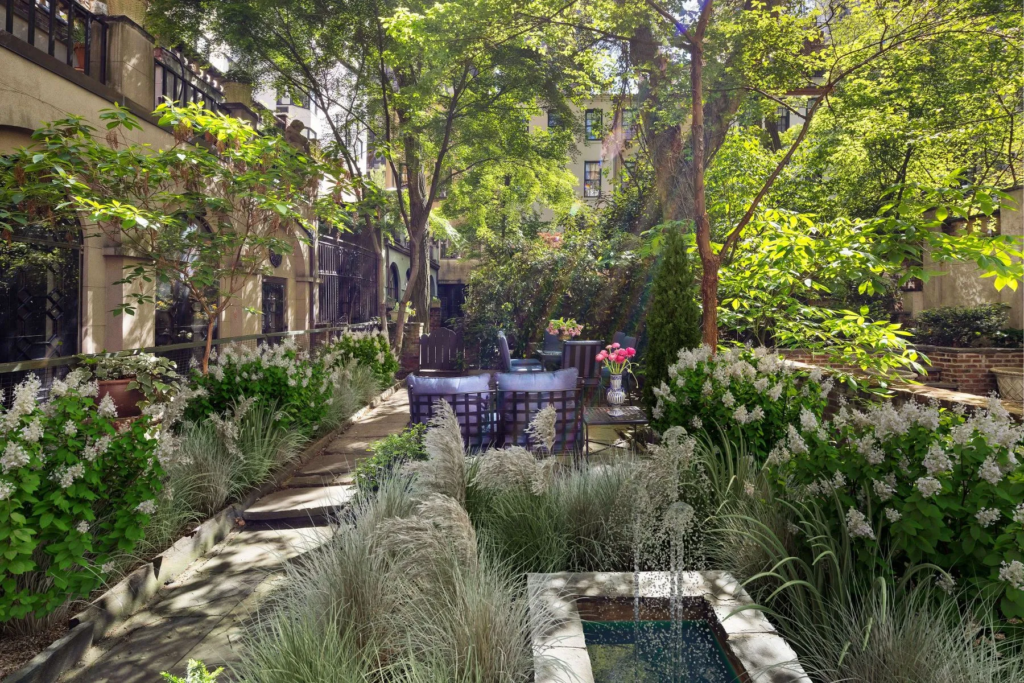 A wooden gate provides direct access to Turtle Bay Gardens, a private park shared by residents of the surrounding 20 townhomes.