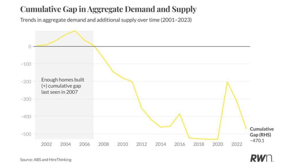Completions currently sit closer to 190,000. The deficit grows every year we miss that mark.