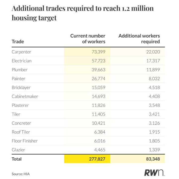The Housing Industry Association estimates that meeting the national target would require an increase of about 30 per cent in skilled trades.