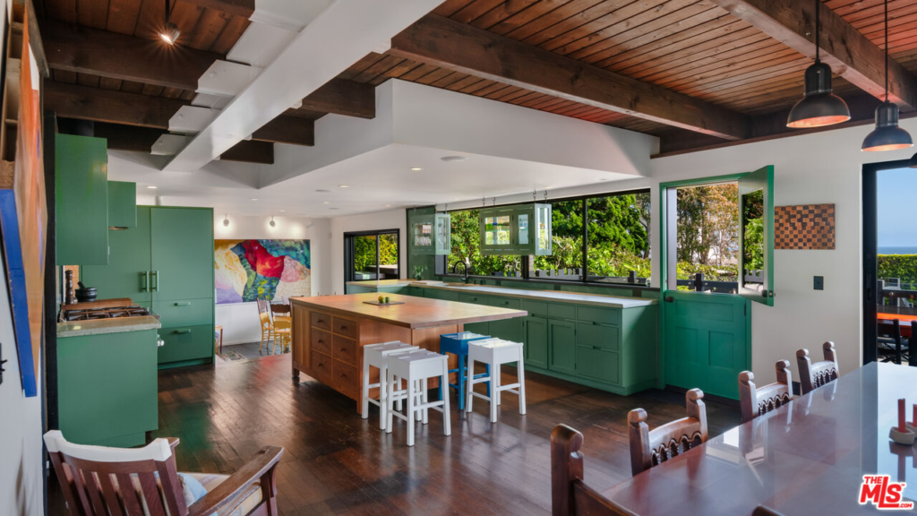 The home is located in a gated community and features interiors by artist Roy McMakin, with what Orlando describes as a “Japanese feel” – including sea-foam green kitchen cabinets and Mexican tiles.