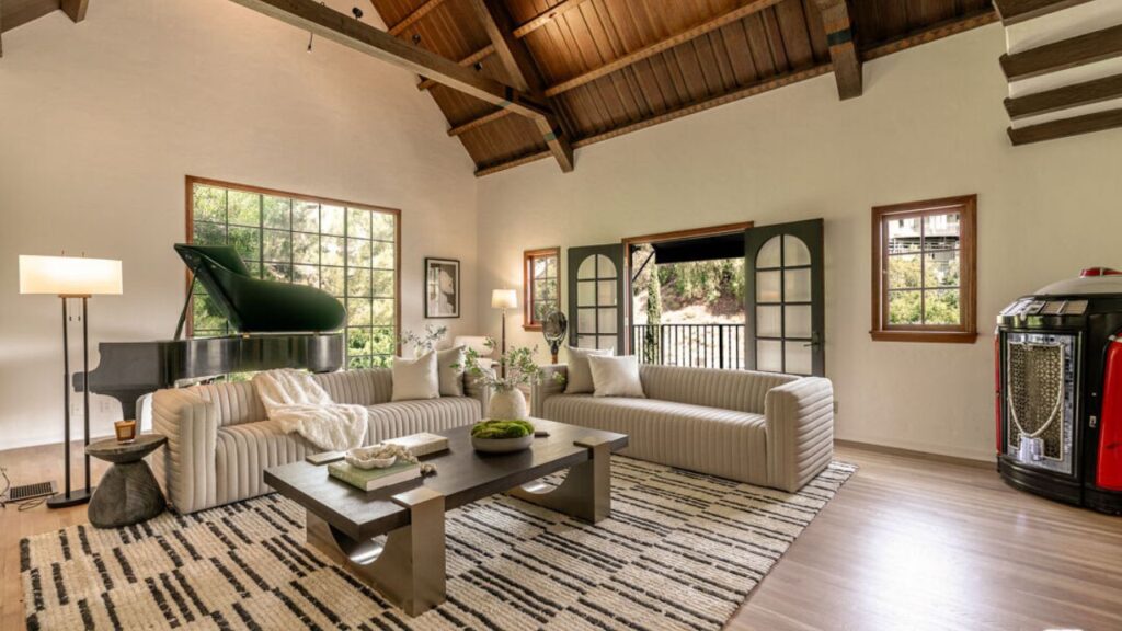 One first-floor bedroom could function as a self-contained guest suite with private entry adjacent to Coleman’s music studio.