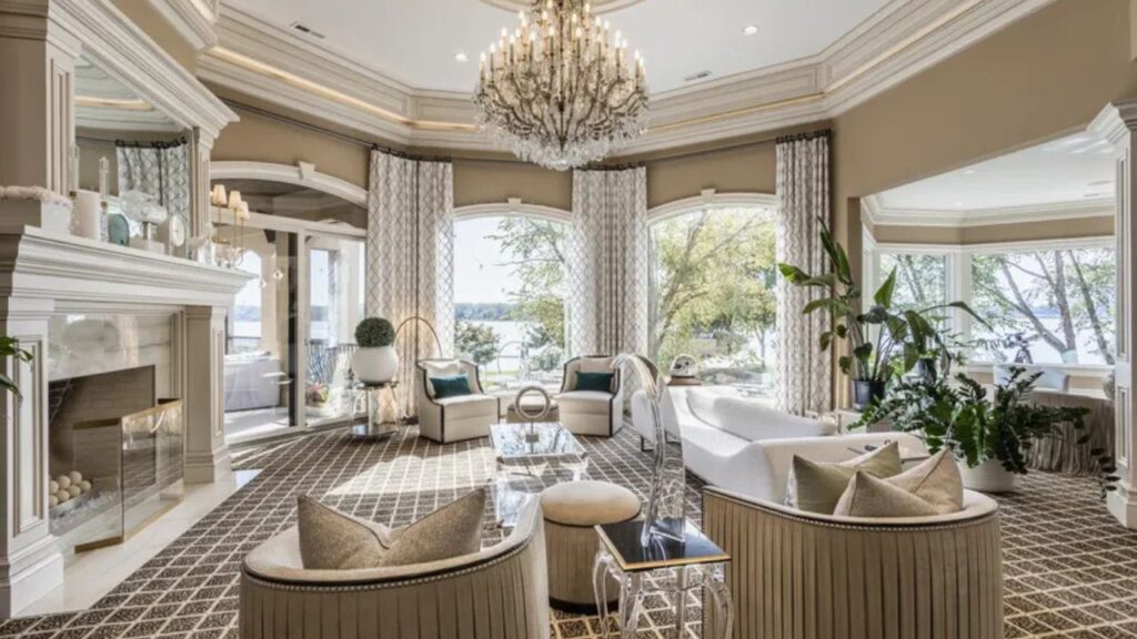 The luxurious property, located in Fishers, Indiana, spans more than five acres of lakefront land and features over 21,000 square feet of living space.