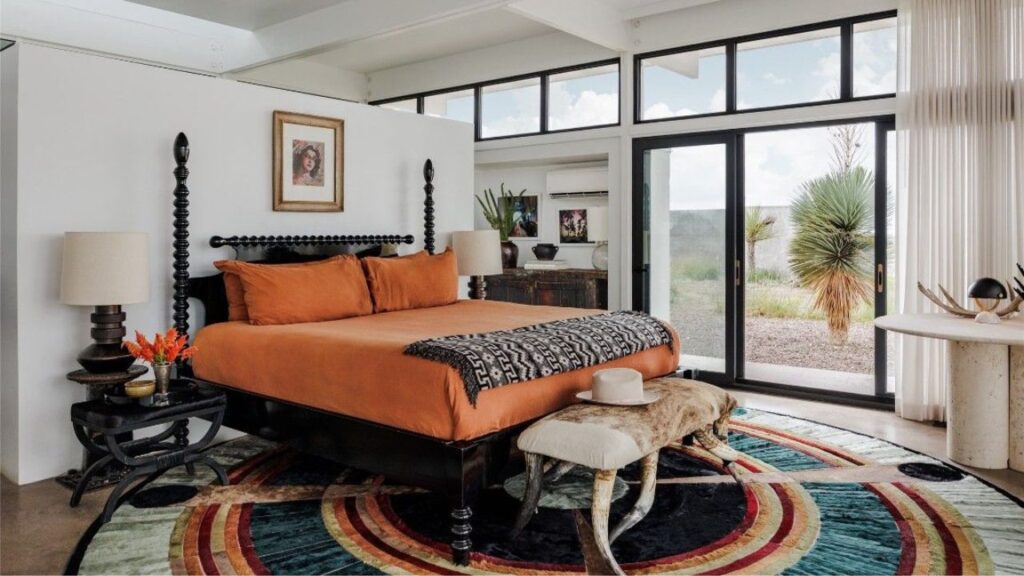 The property also features a fire pit, a screened palapa for shade, and a Donald Judd-inspired pavilion that pays homage to the American artist who transformed Marfa into a minimalism mecca in the 1970s.