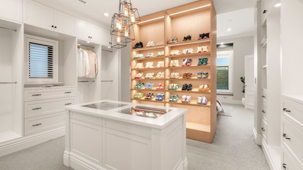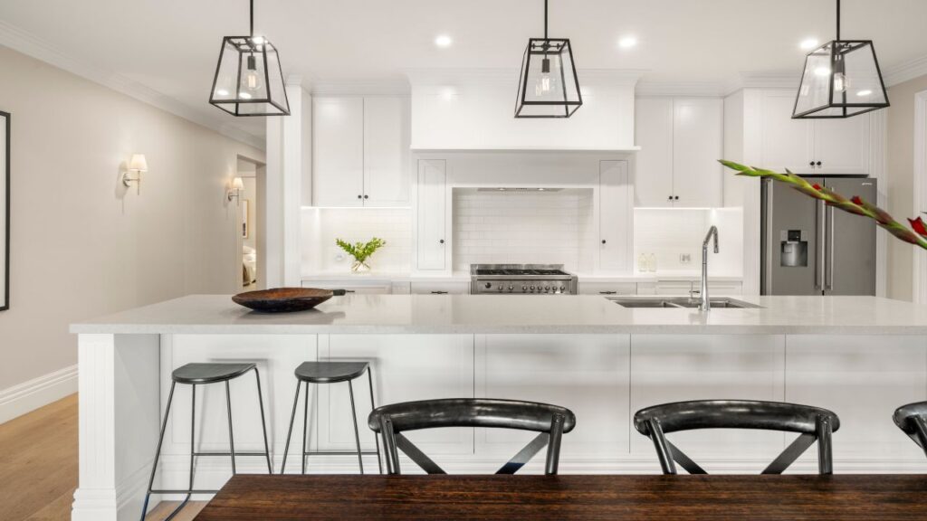 The kitchen sits at the centre of the home and is supported by a butler’s pantry and integrated SMEG appliances.