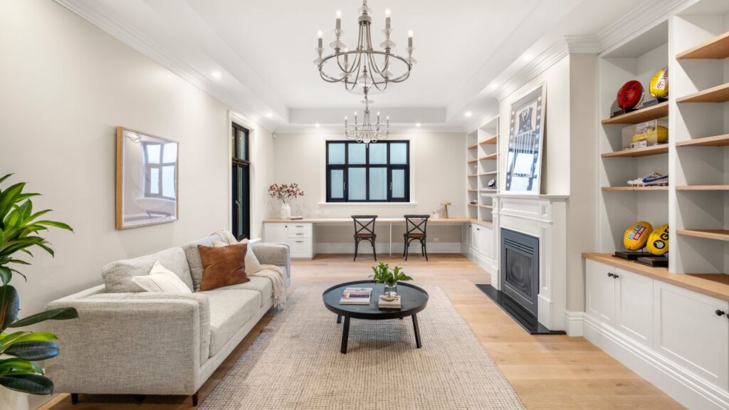 Outdoor areas were designed with both recovery and lifestyle in mind. A tiled, heated swimming pool, private gym, outdoor kitchen and barbecue area sit within a generous rear yard, while a private theatre room was created as a dedicated space for rest and relaxation.