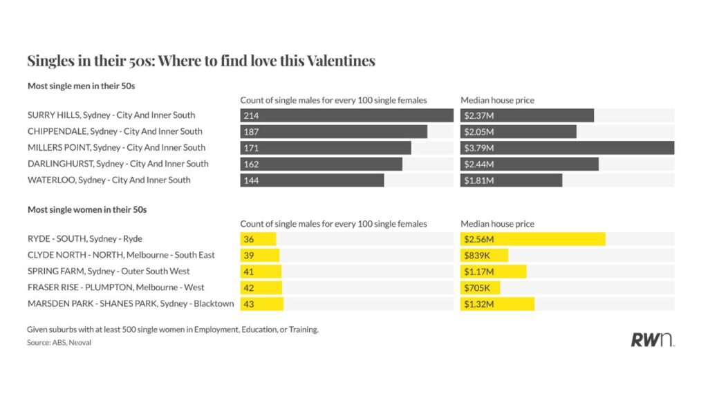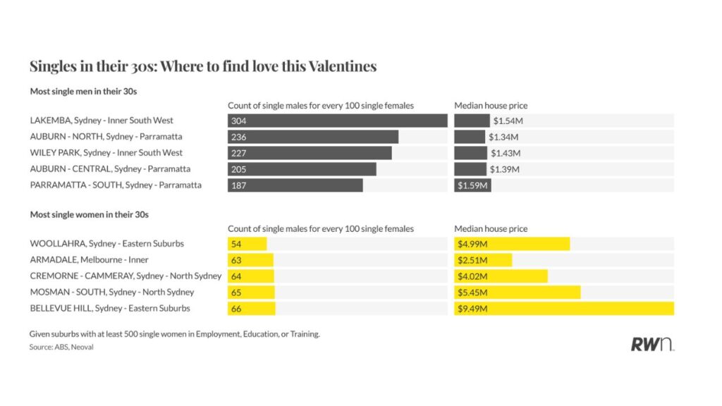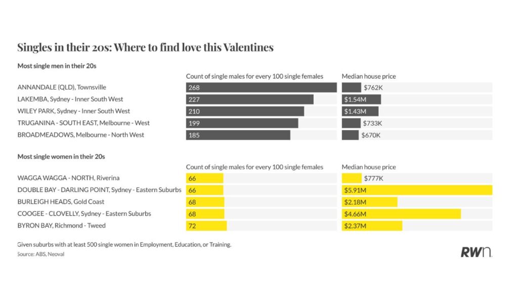 Valentine’s Day postcode: Why Australia’s singles aren’t living in the same neighbourhood